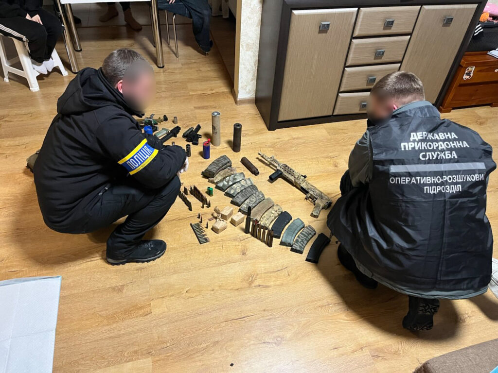 Під час санкціонованих обшуків за місцями проживання фігурантів справи вилучено набої та комплектуючі до вогнепальної зброї, димові гранати, ноутбуки, мобільні телефони, грошові кошти, чорнові записи та інші речові докази.